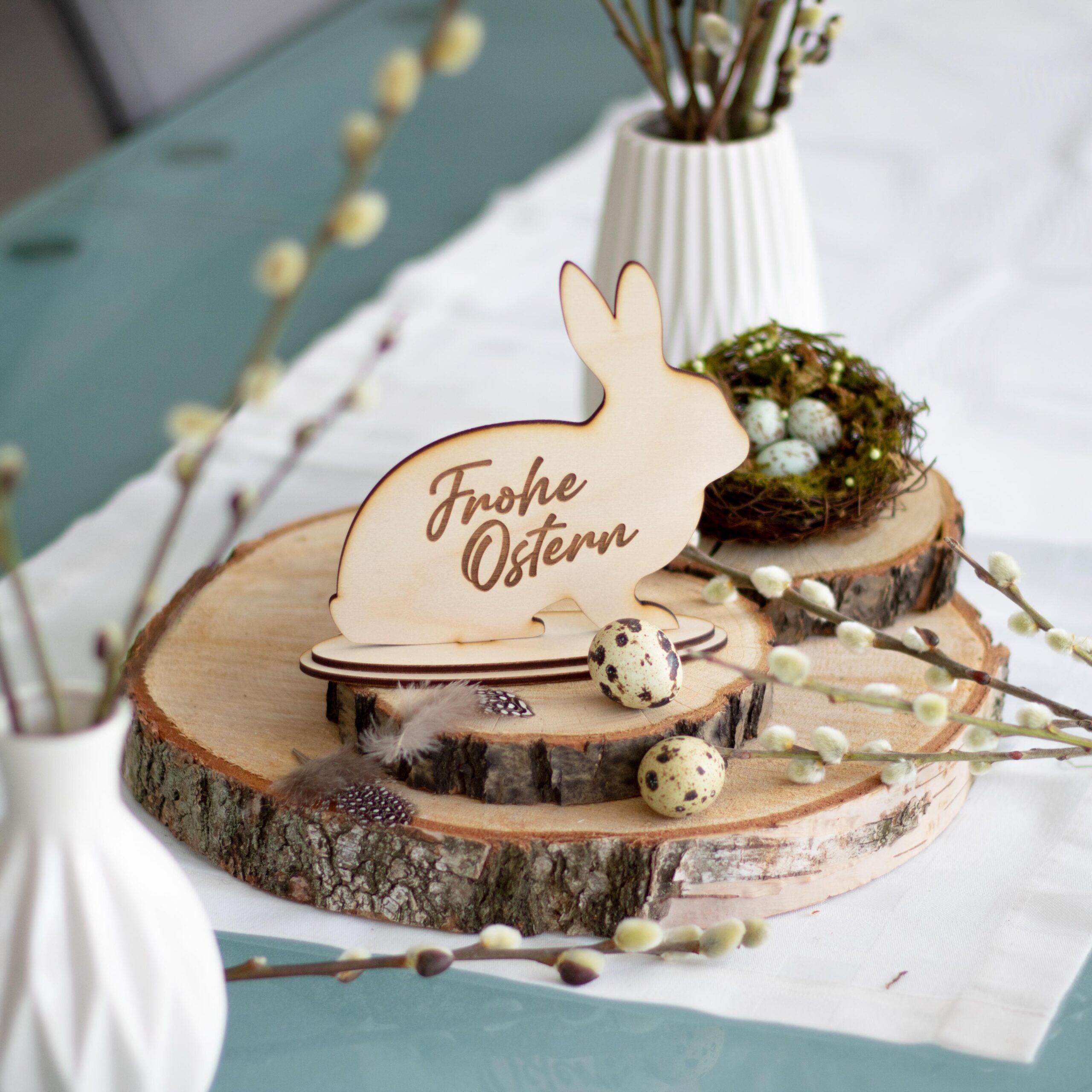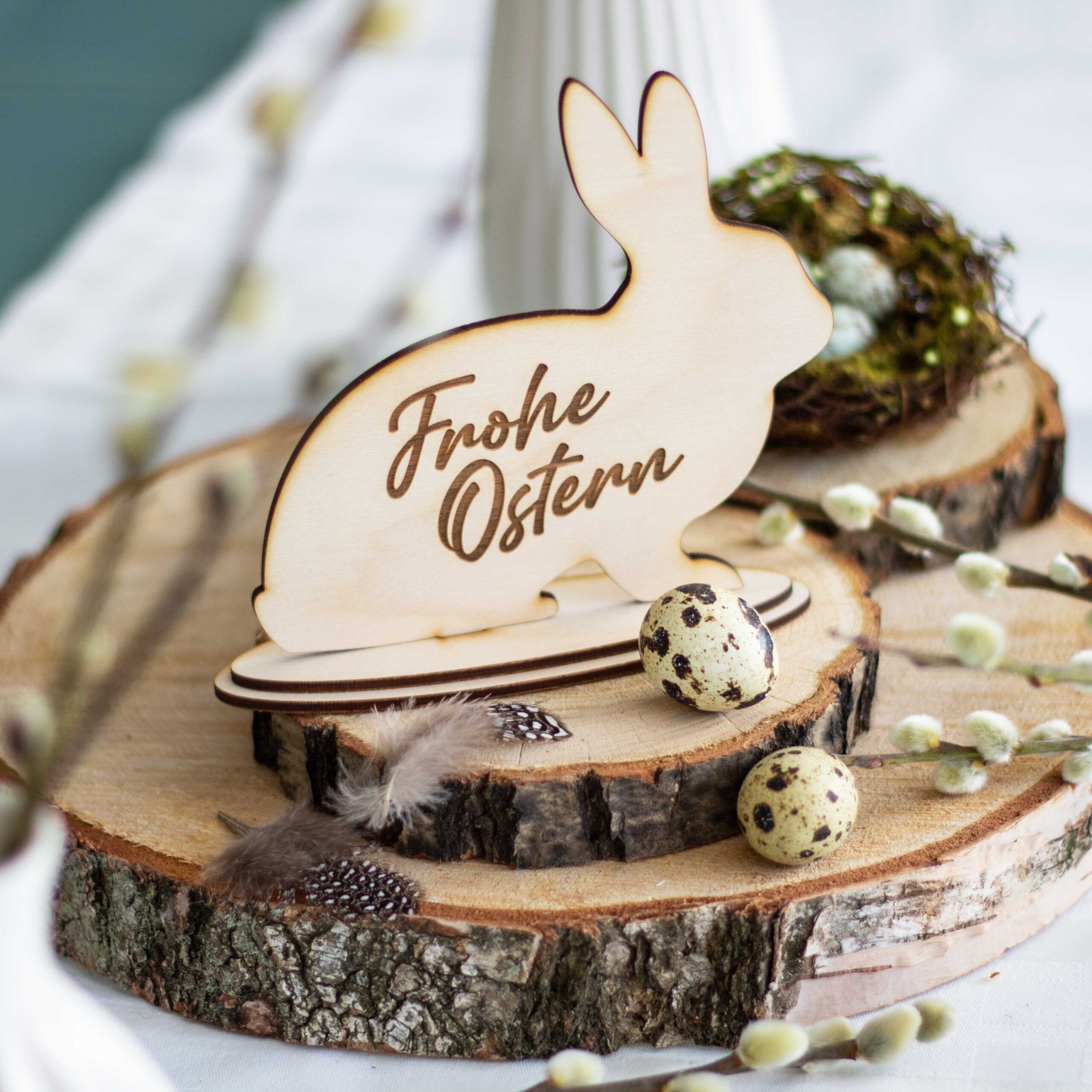 Der putzige Osterhase ist eine schöne Osterdeko. Ob für den Tisch, die Fensterbank oder das Sideboard, der Hase zum Zusammenstecken mit eleganter Gravur ist immer ein hübscher Blickfang. Und ist natürlich auch ein willkommenes Ostergeschenk.