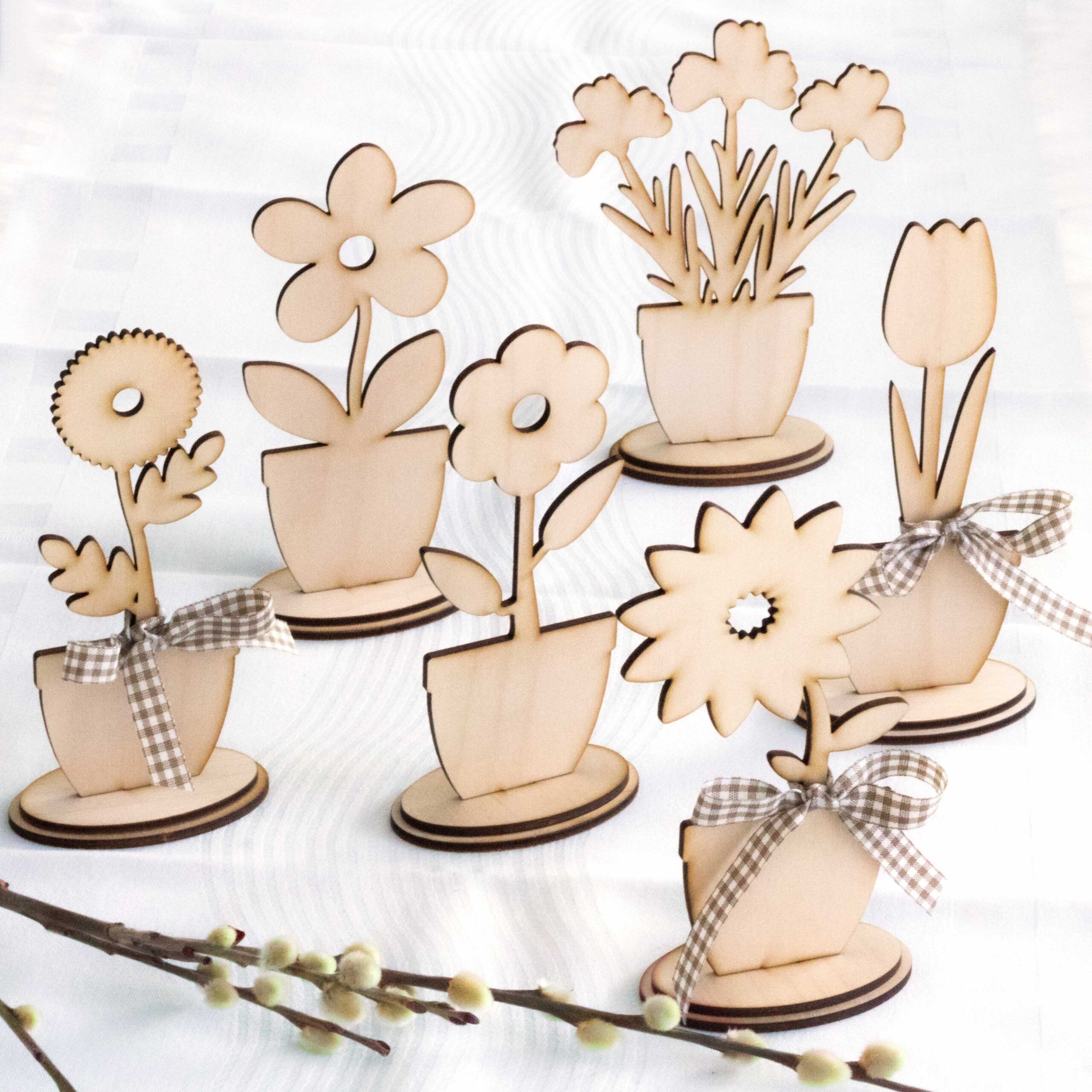 Holzblumenset zum Zusammenstecken (6 Stück)