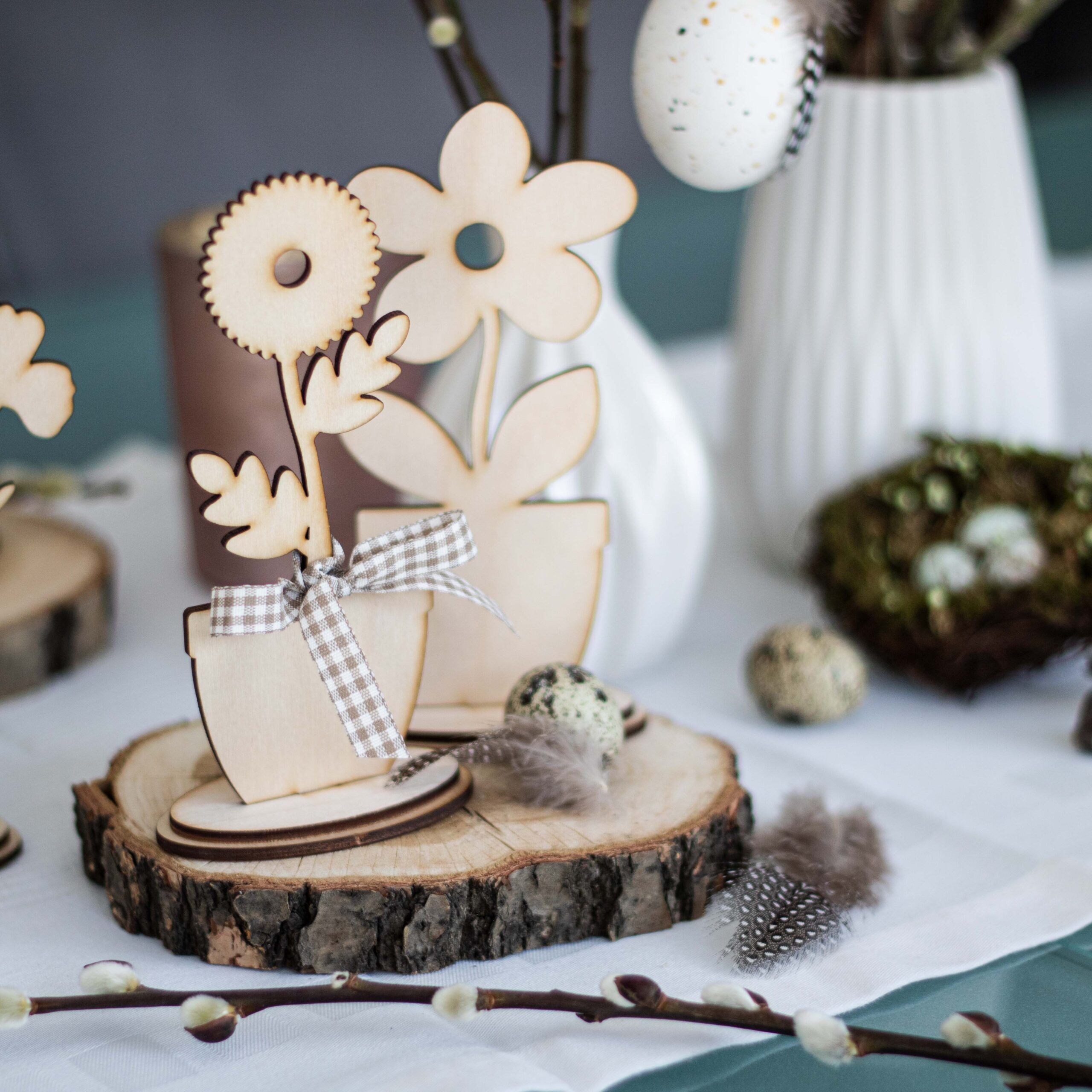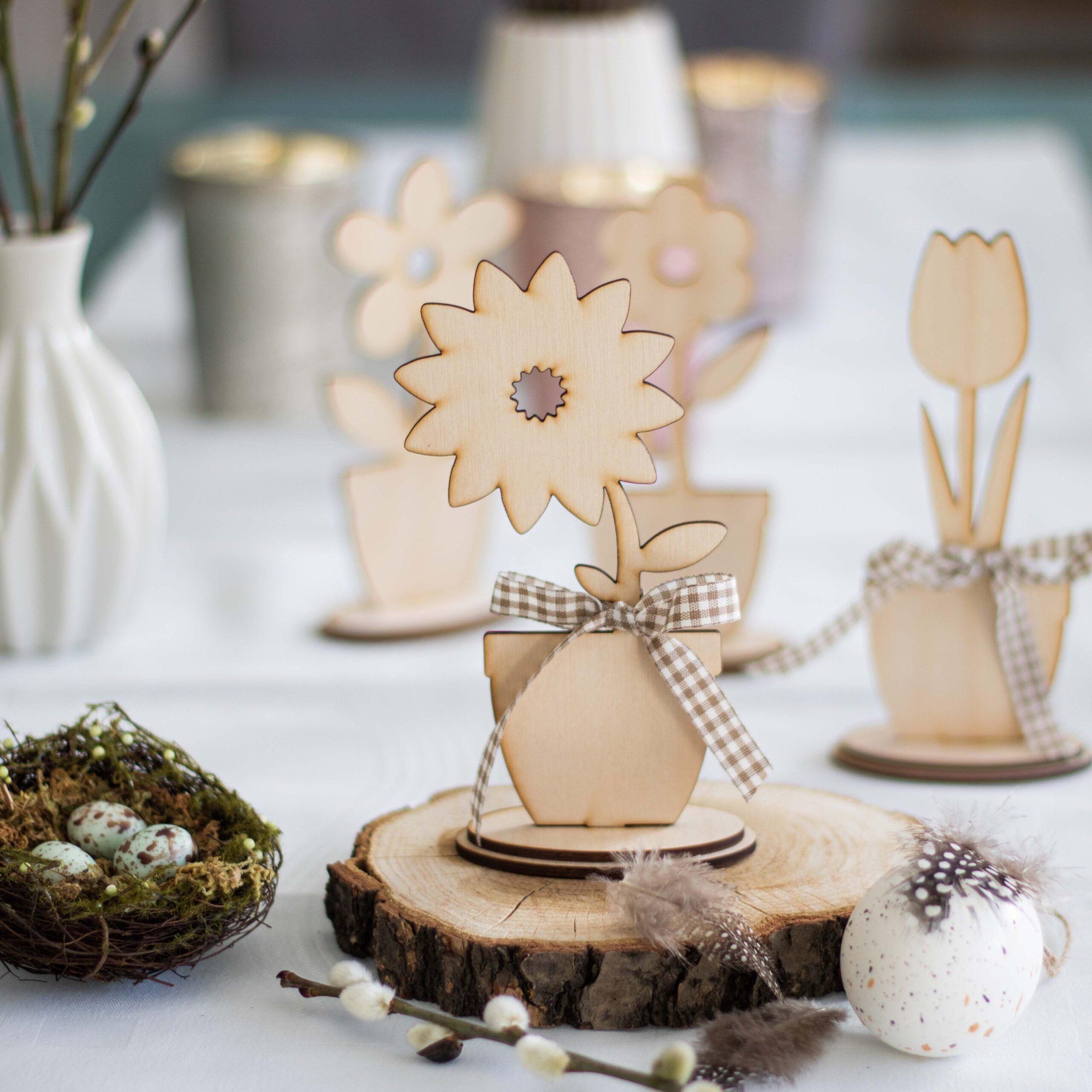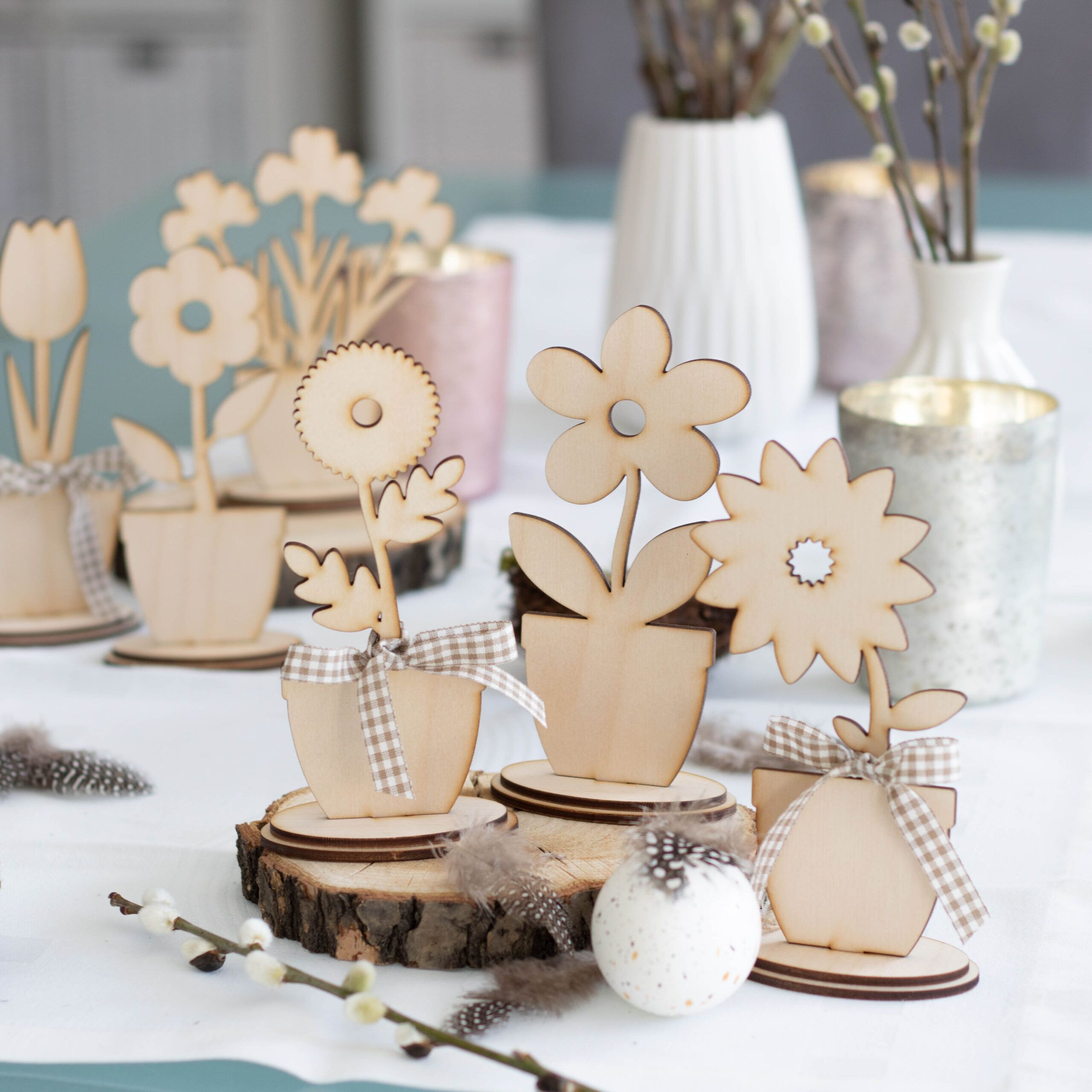 Mit diesem Blumensortiment, bestehend aus 6 Blumen zum Zusammenstecken, kannst du nicht nur zur Osterzeit eine wunderschöne Tischdekoration zaubern.