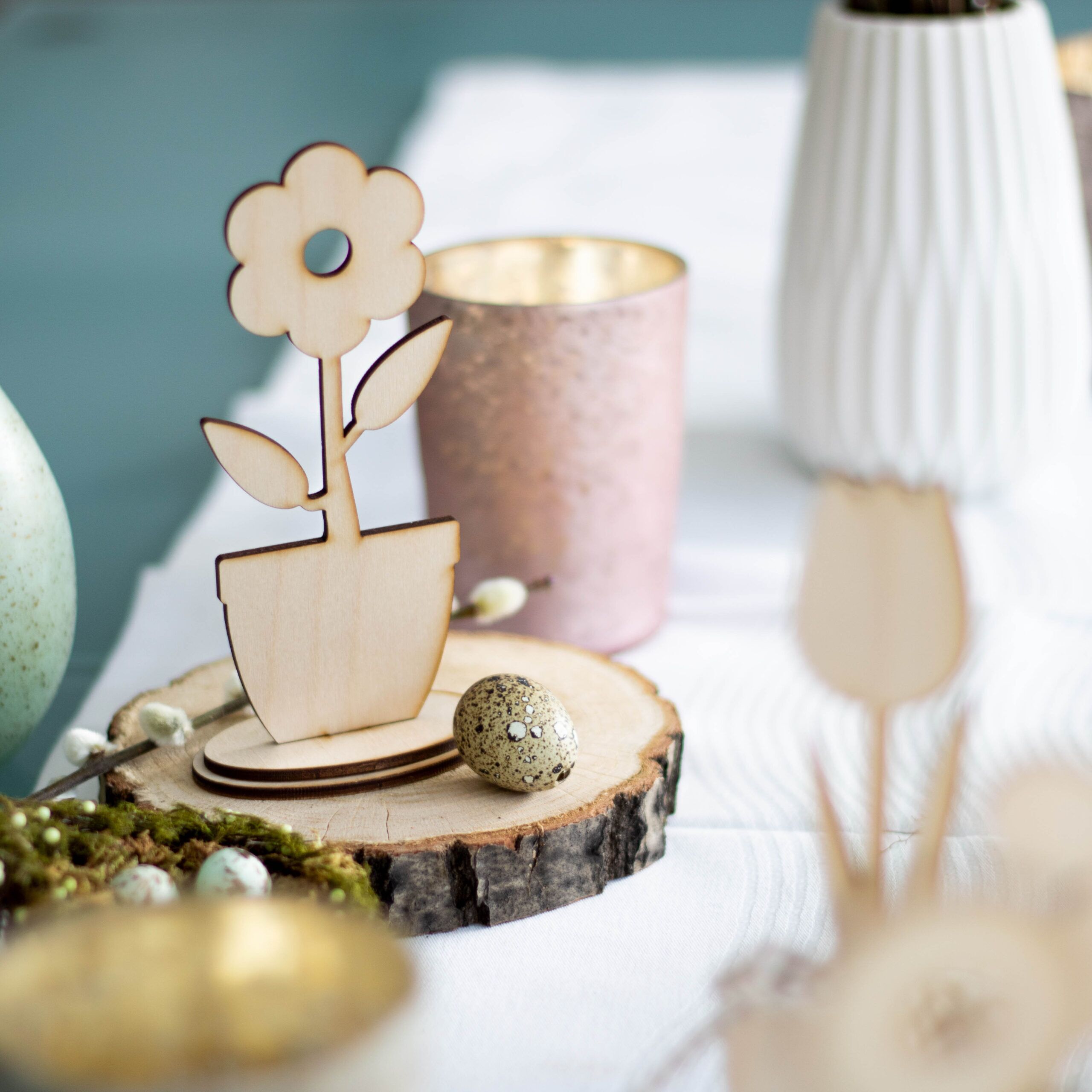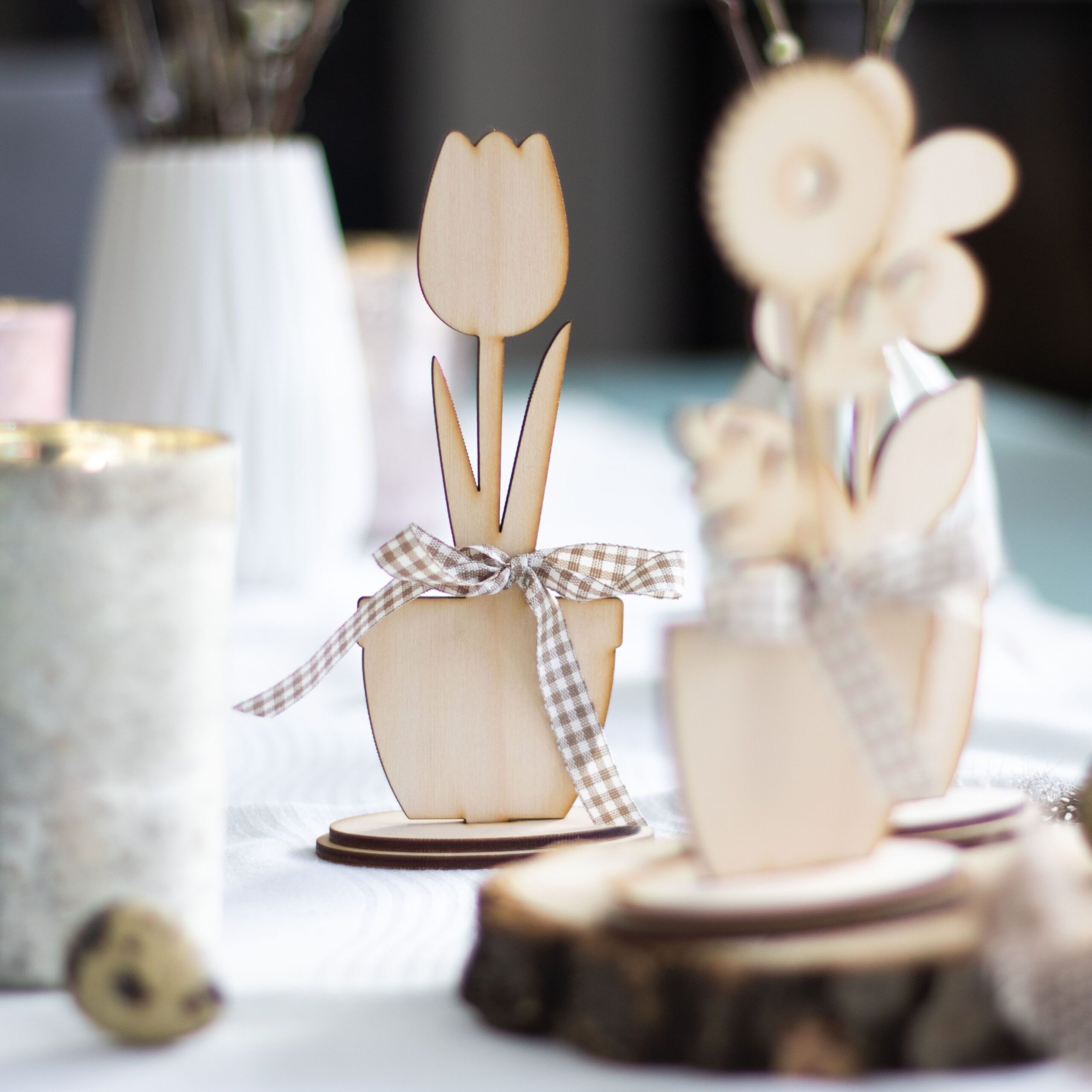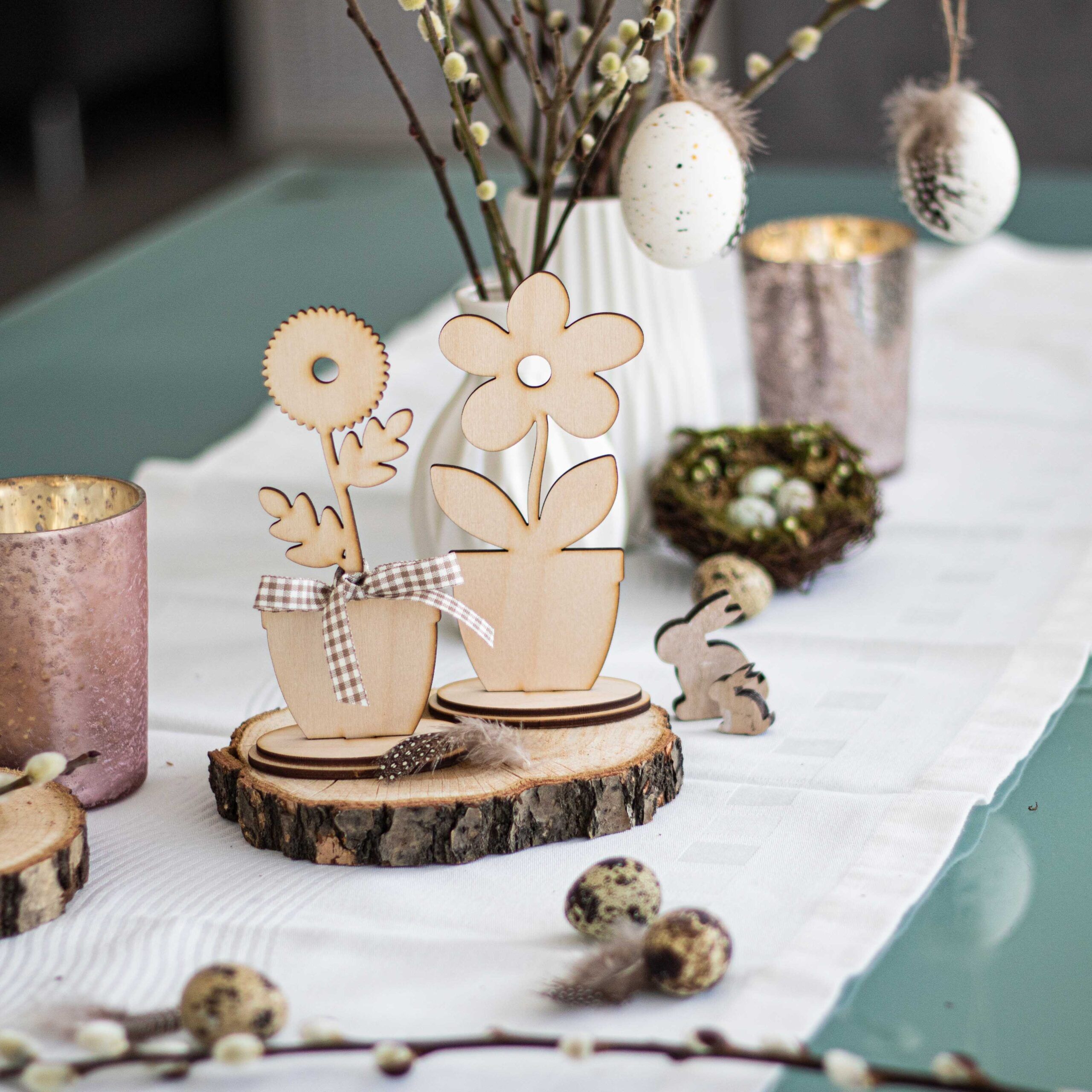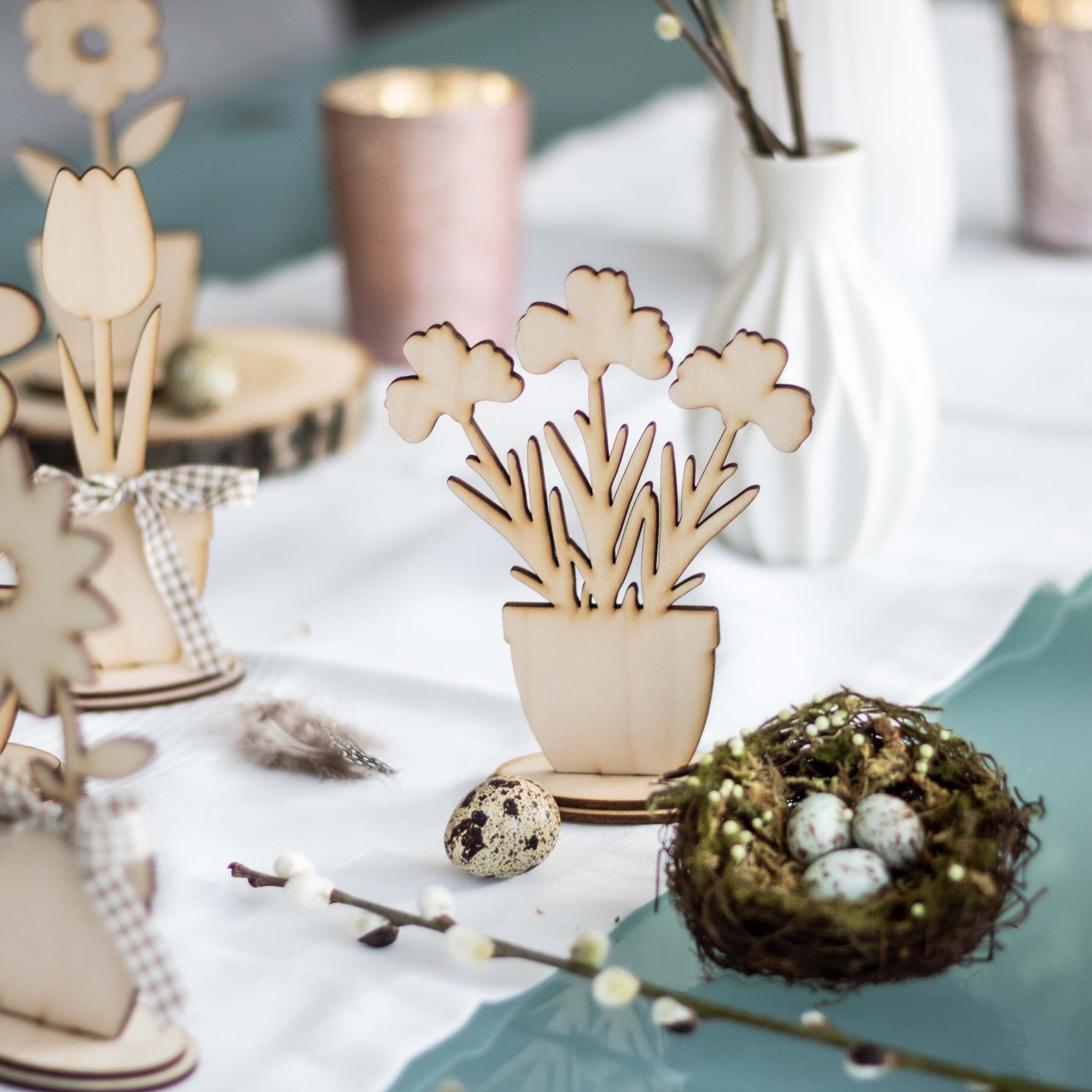 Mit diesem Blumensortiment, bestehend aus 6 Blumen zum Zusammenstecken, kannst du nicht nur zur Osterzeit eine wunderschöne Tischdekoration zaubern.