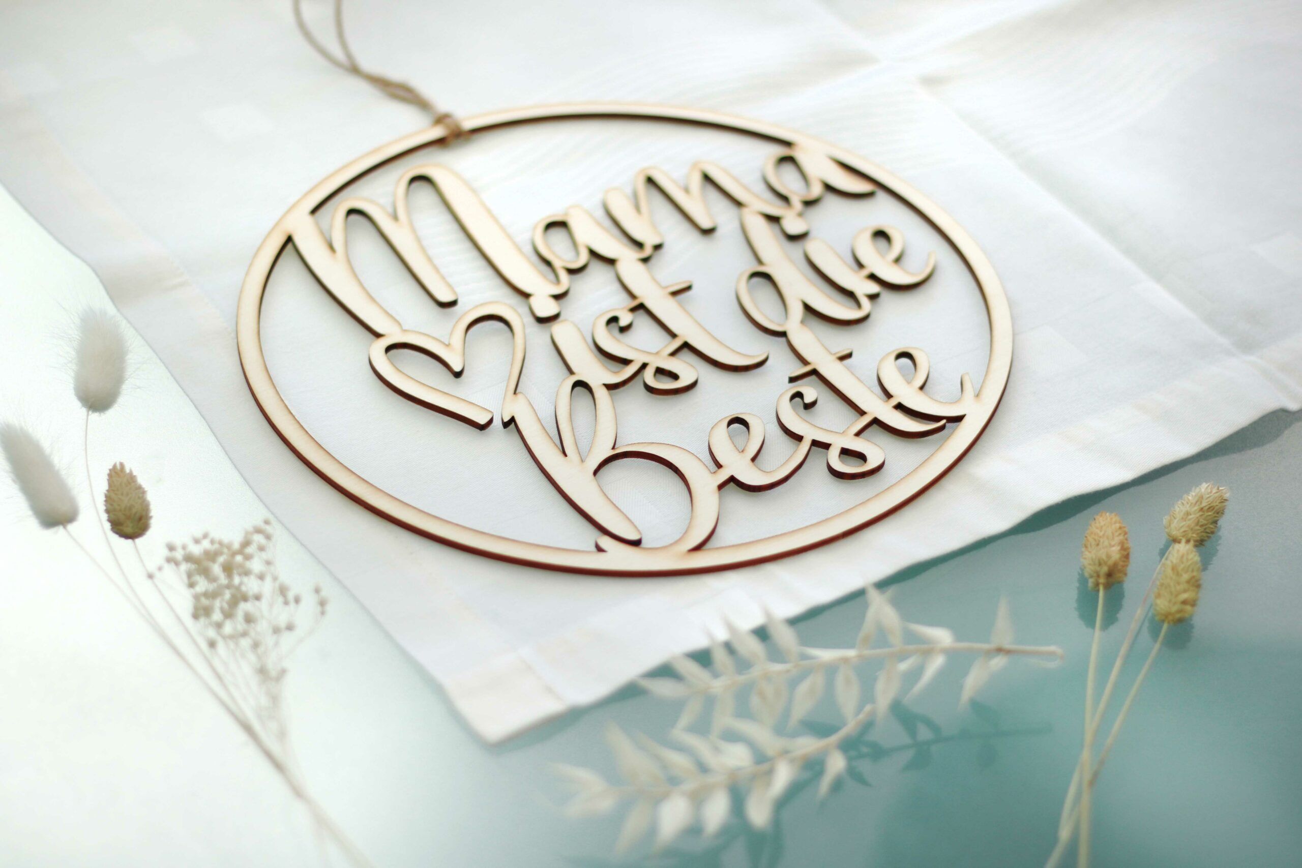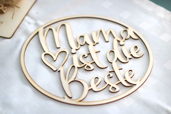 Holzkranz mit „Mama-ist-die-Beste“-Schriftzug. Darüber freut sich sicherlich jede Mama!