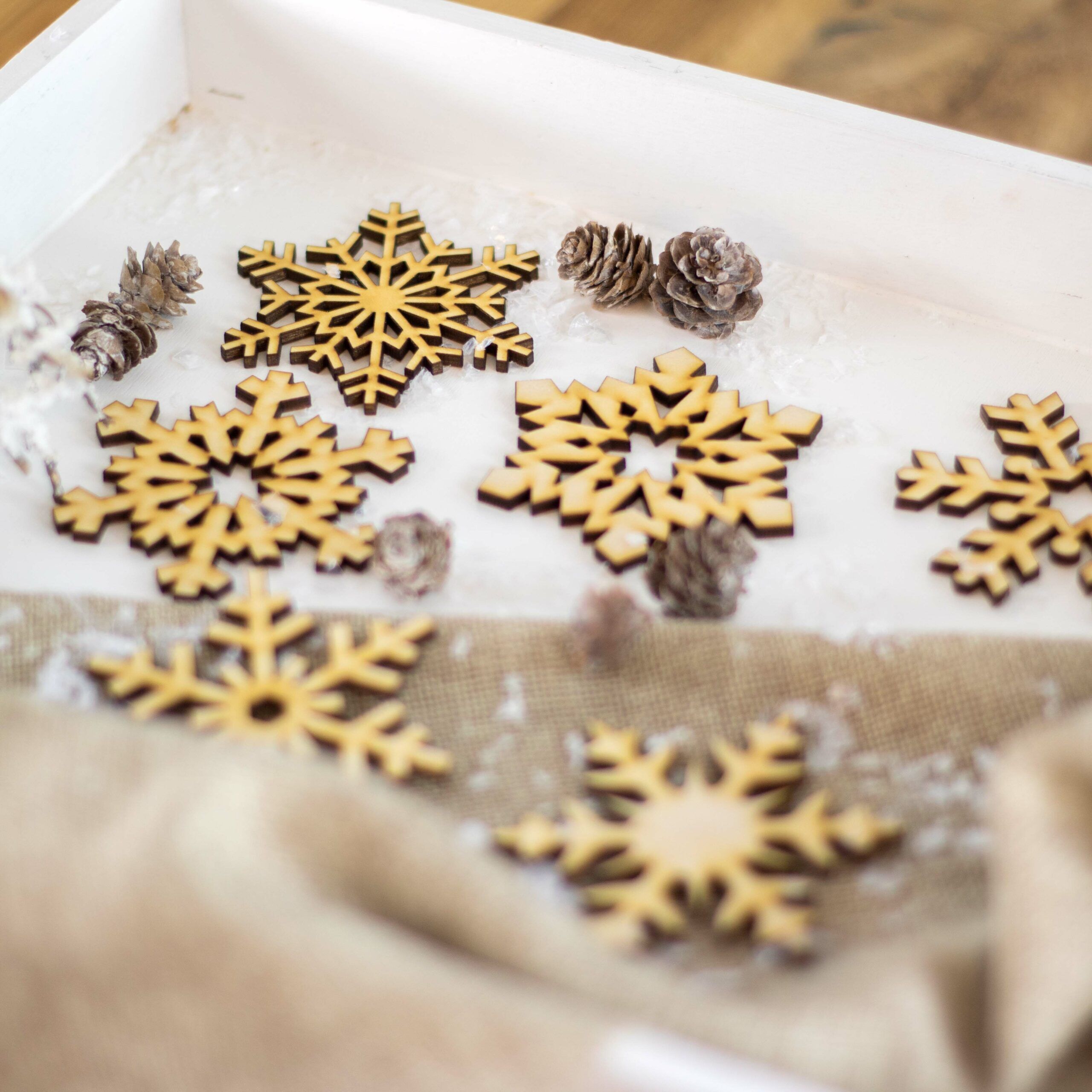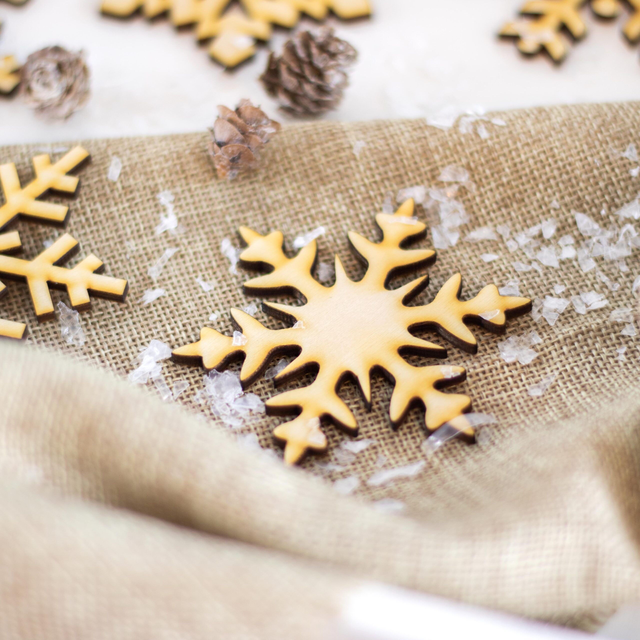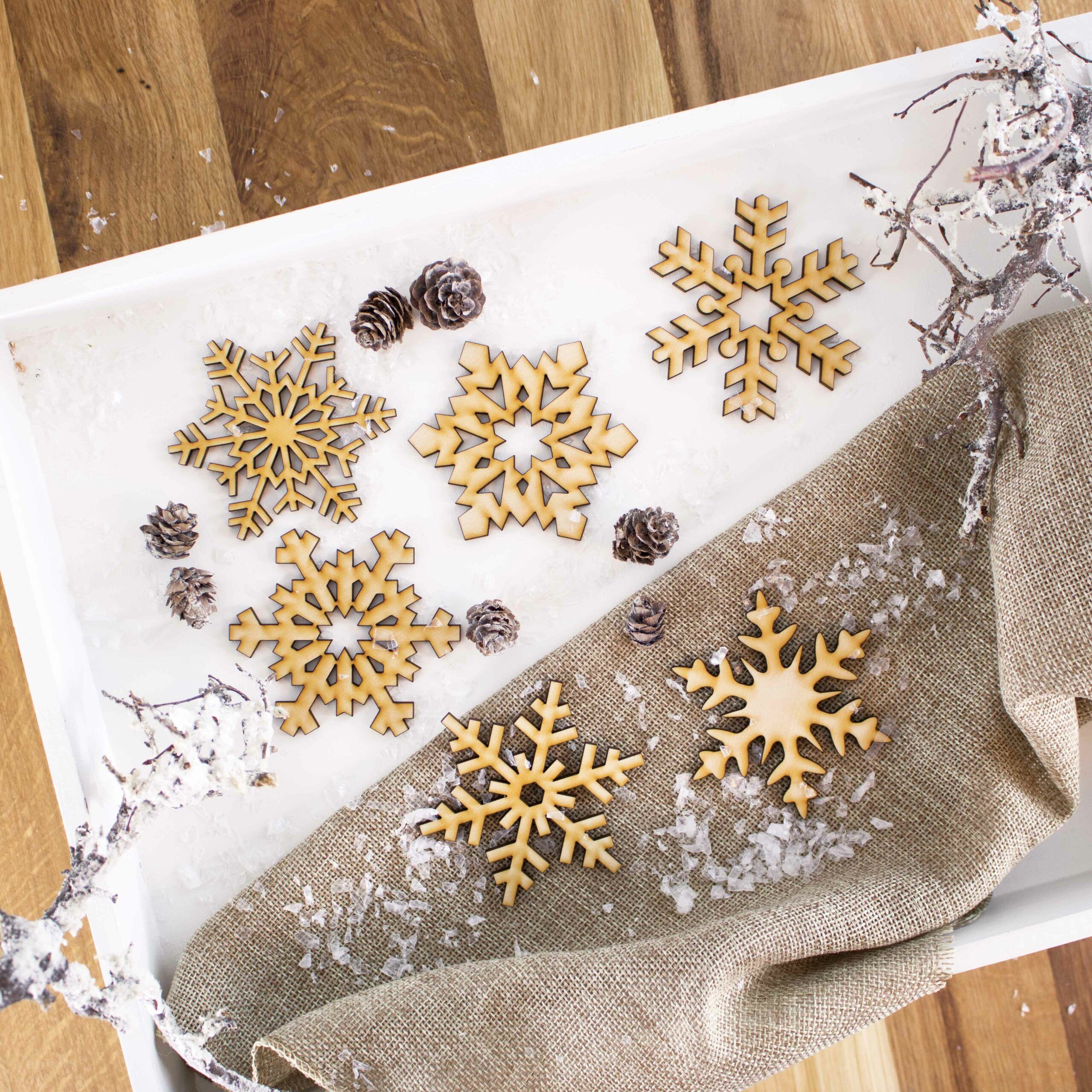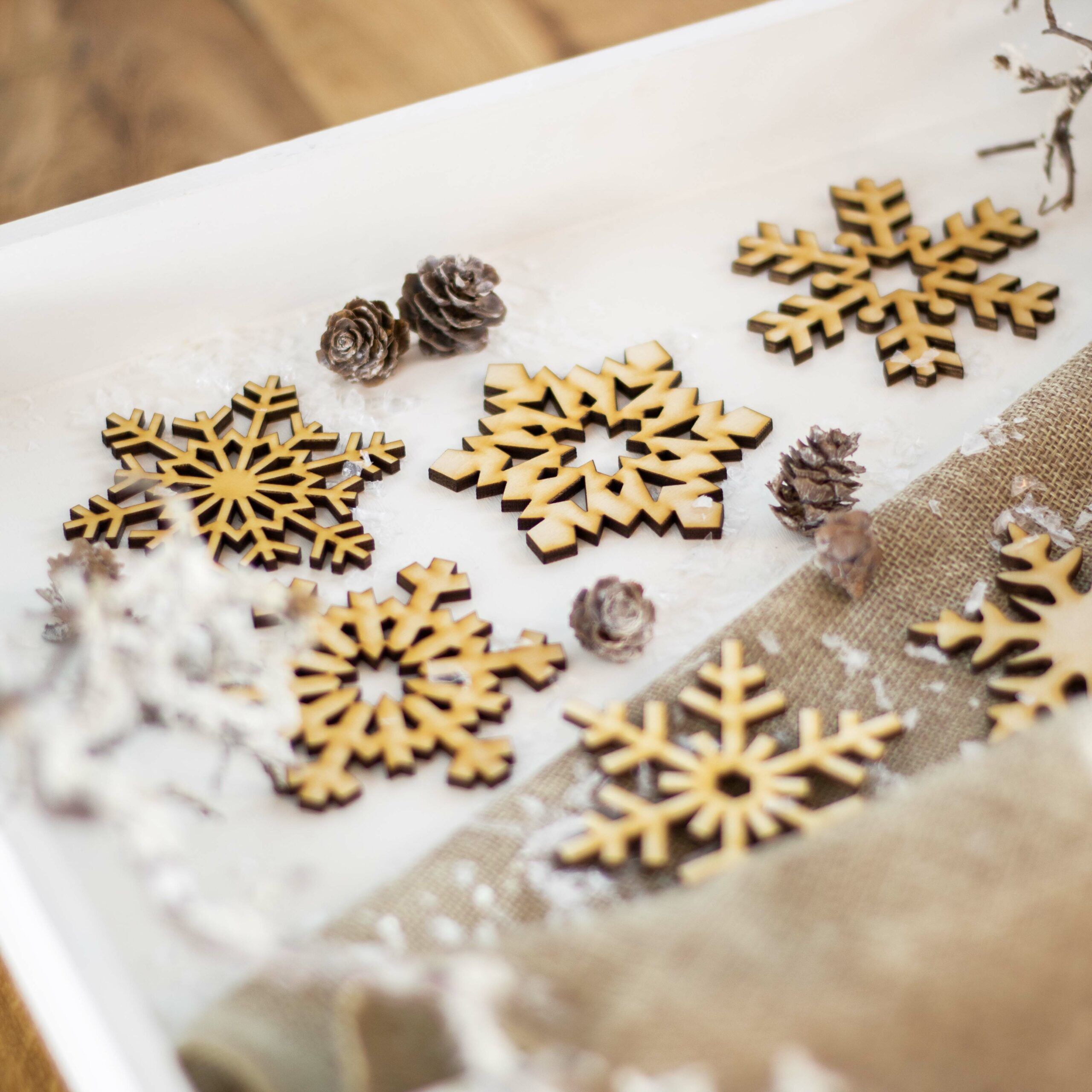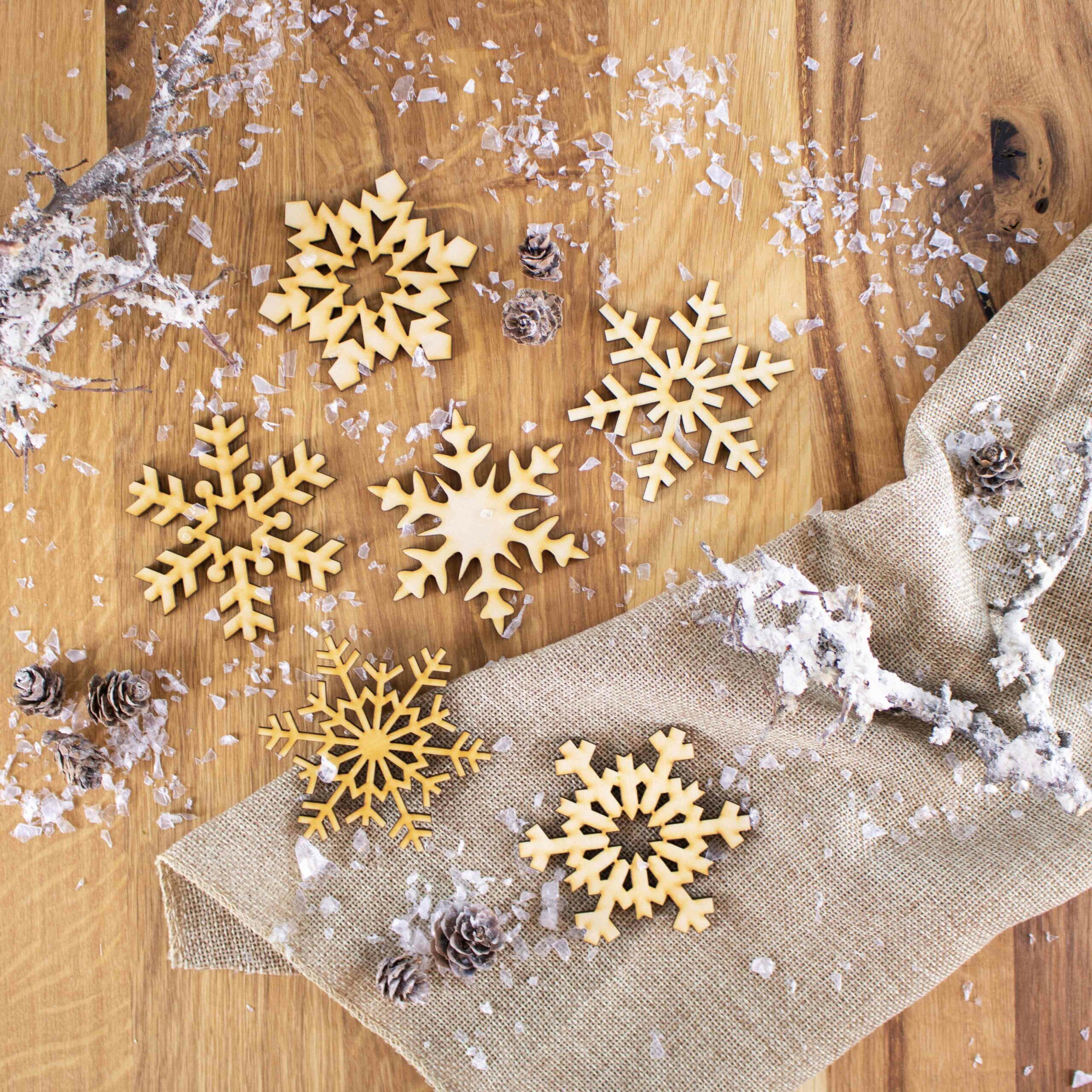 Wunderschön als Bastelmaterial, Christbaumhänger, als Streuteile für den Tisch oder zum Dekorieren von Geschenken. Die Scheeflocken kannst du auch besprühen oder anmalen – da sind der Kreativität keine Grenzen gesetzt.