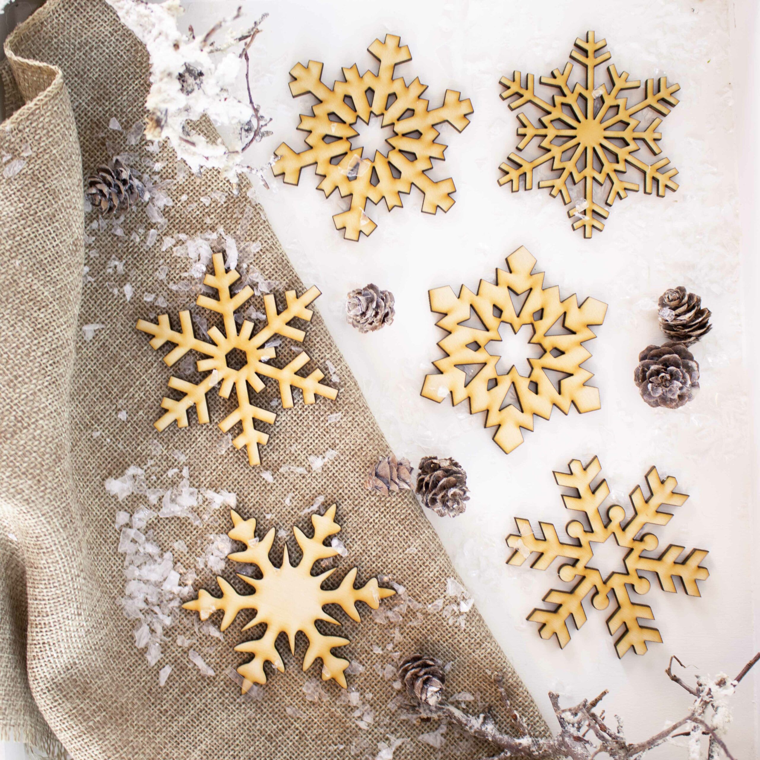 Schneeflocken in 6 Designs für deine individuelle Dekoration.